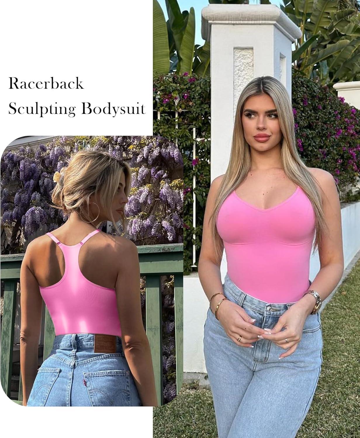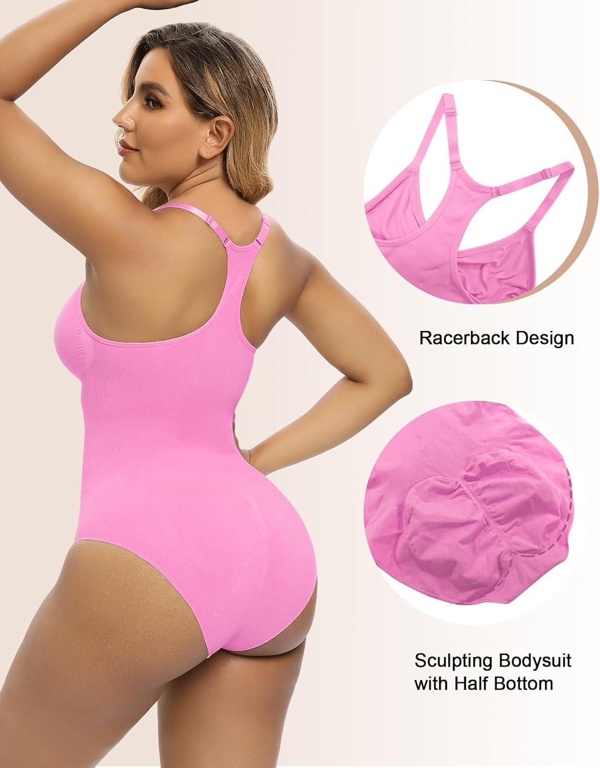 SHAPERX Bodysuit for Women Tummy Control Shapewear Racerback Seamless Body Shaper Tank Top(Pink)