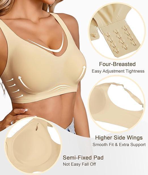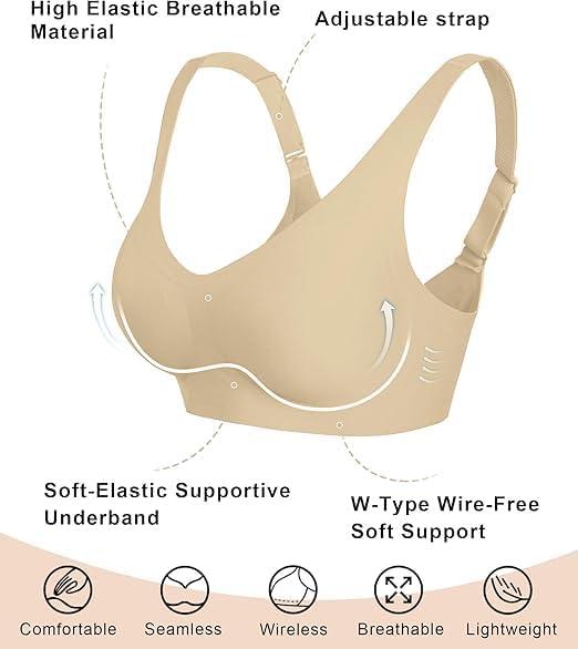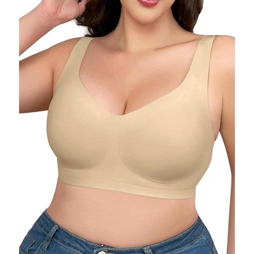 SHAPERX Bras for Women No Underwire Seamless Oversized Everyday Bra Comfort Wireless Padded Soft Support Bralette(Beige)