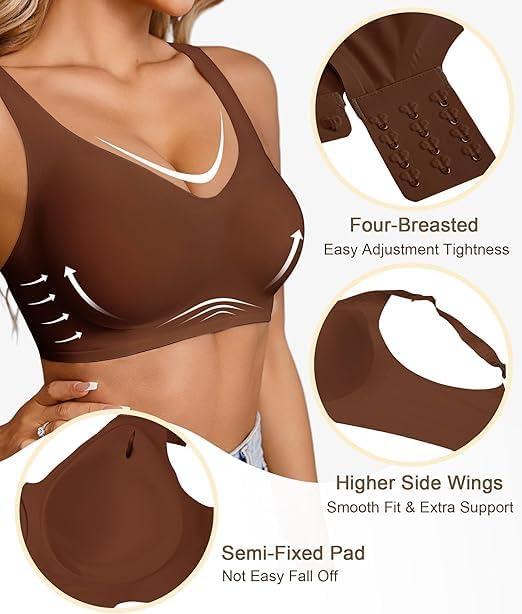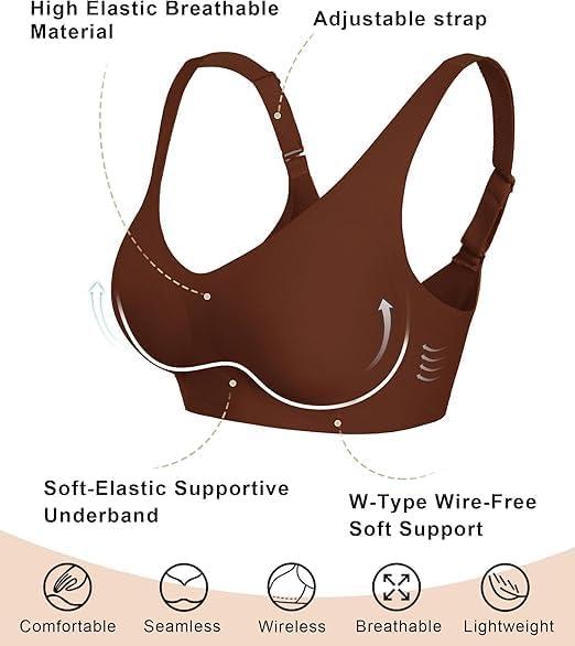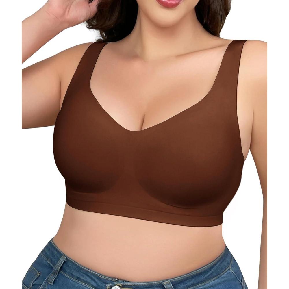 SHAPERX Bras for Women No Underwire Seamless Oversized Everyday Bra Comfort Wireless Padded Soft Support Bralette(Coffee)