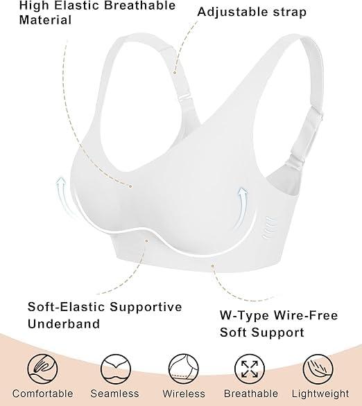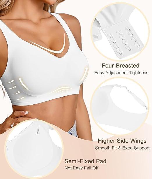 imageSHAPERX Bras for Women No Underwire Seamless Oversized Everyday Bra Comfort Wireless Padded Soft Support BraletteWhite
