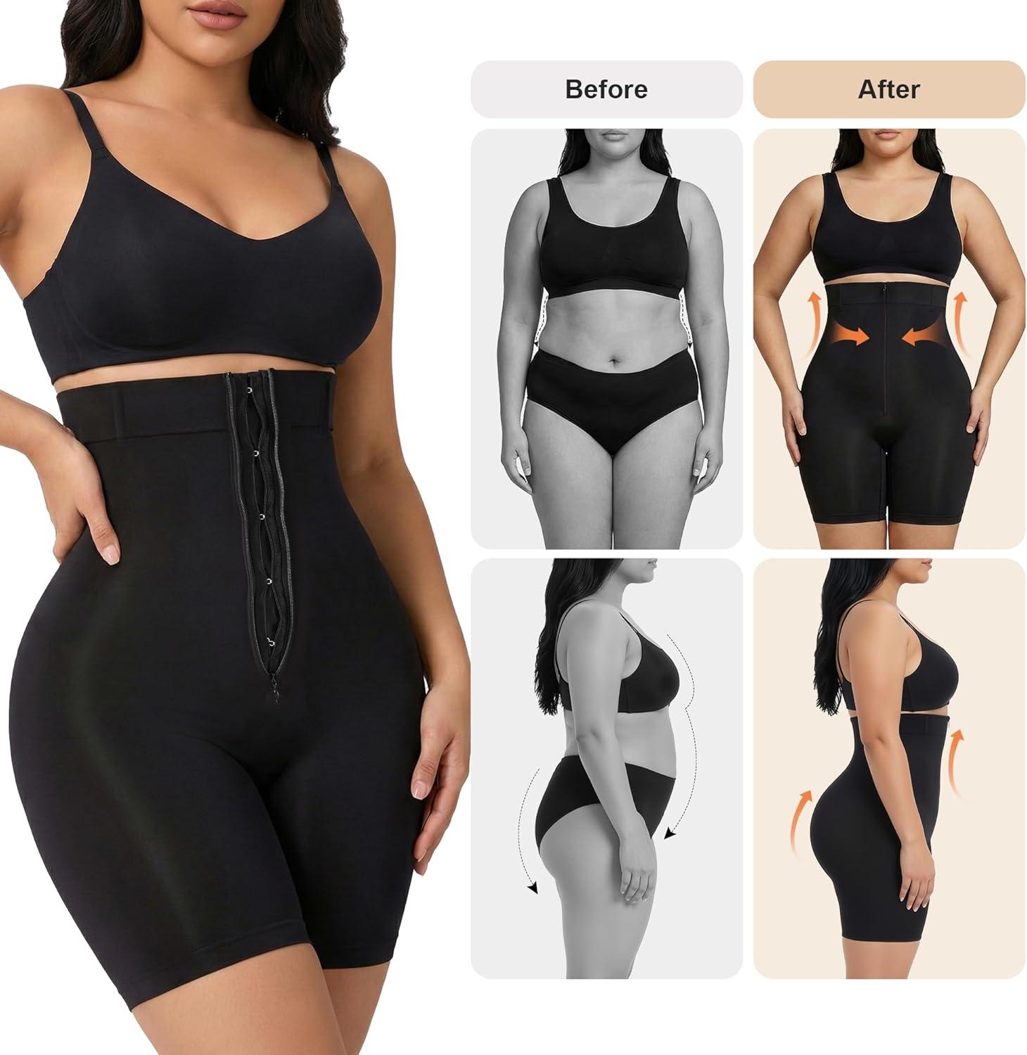 SHAPERX High-Waisted Tummy Control Shapewear for Women Seamless Zip-Up Easy-On Body Shaper Shorts Slimming Fit Underwear(Black)