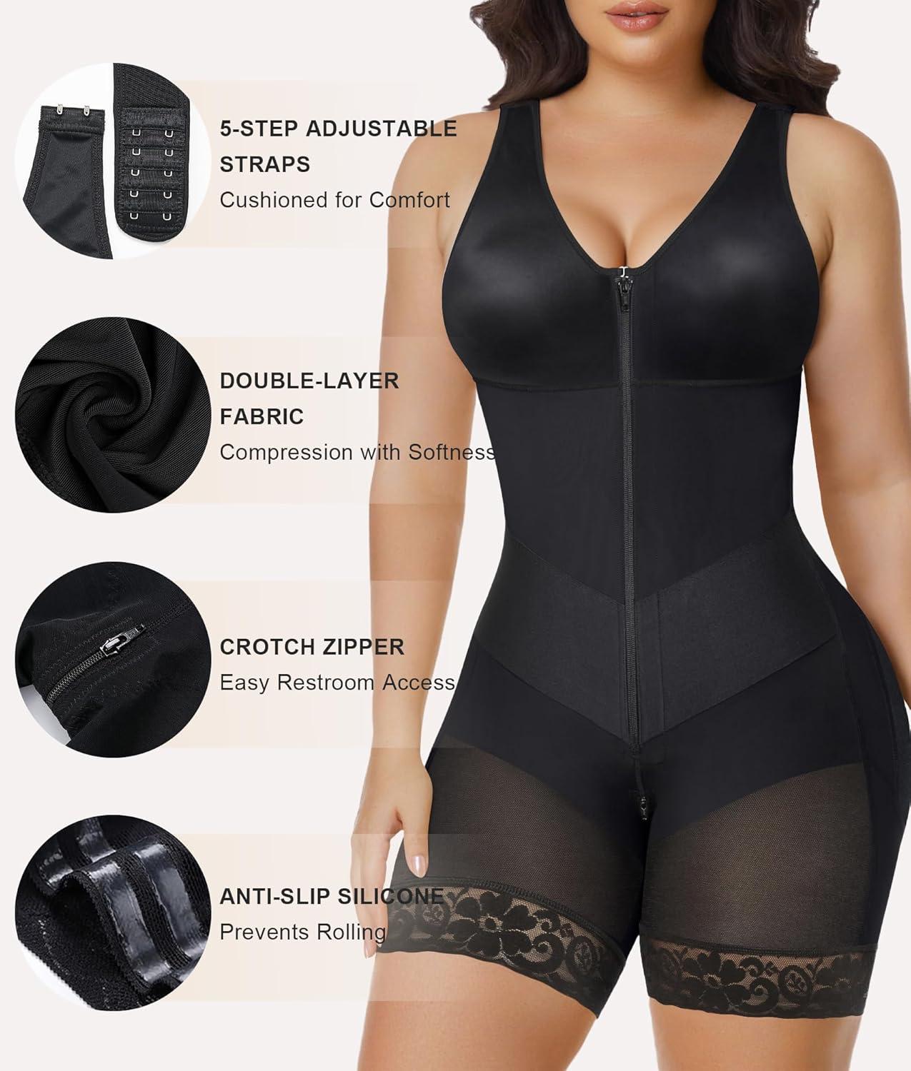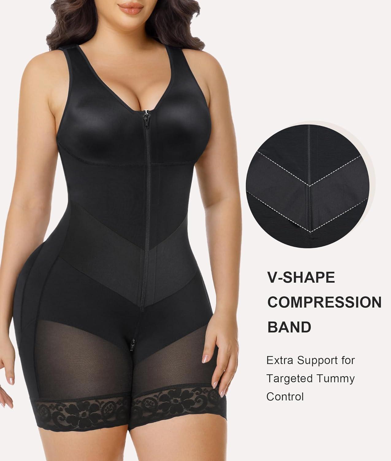 SHAPERX V-Shaped Fajas Colombianas Moldeadoras Enhanced Tummy Control Shapewear Postpartum Butt Lifter Full Body Shaper(Black)