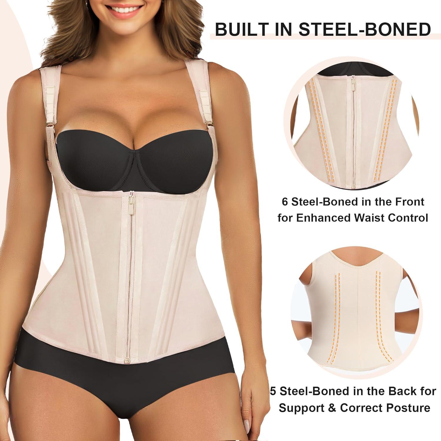 imageSHAPERX Waist Trainer Corset for Women Tummy Control Sport Girdle Hourglass Waist Cincher Body Shaper with Steel BonedBlack