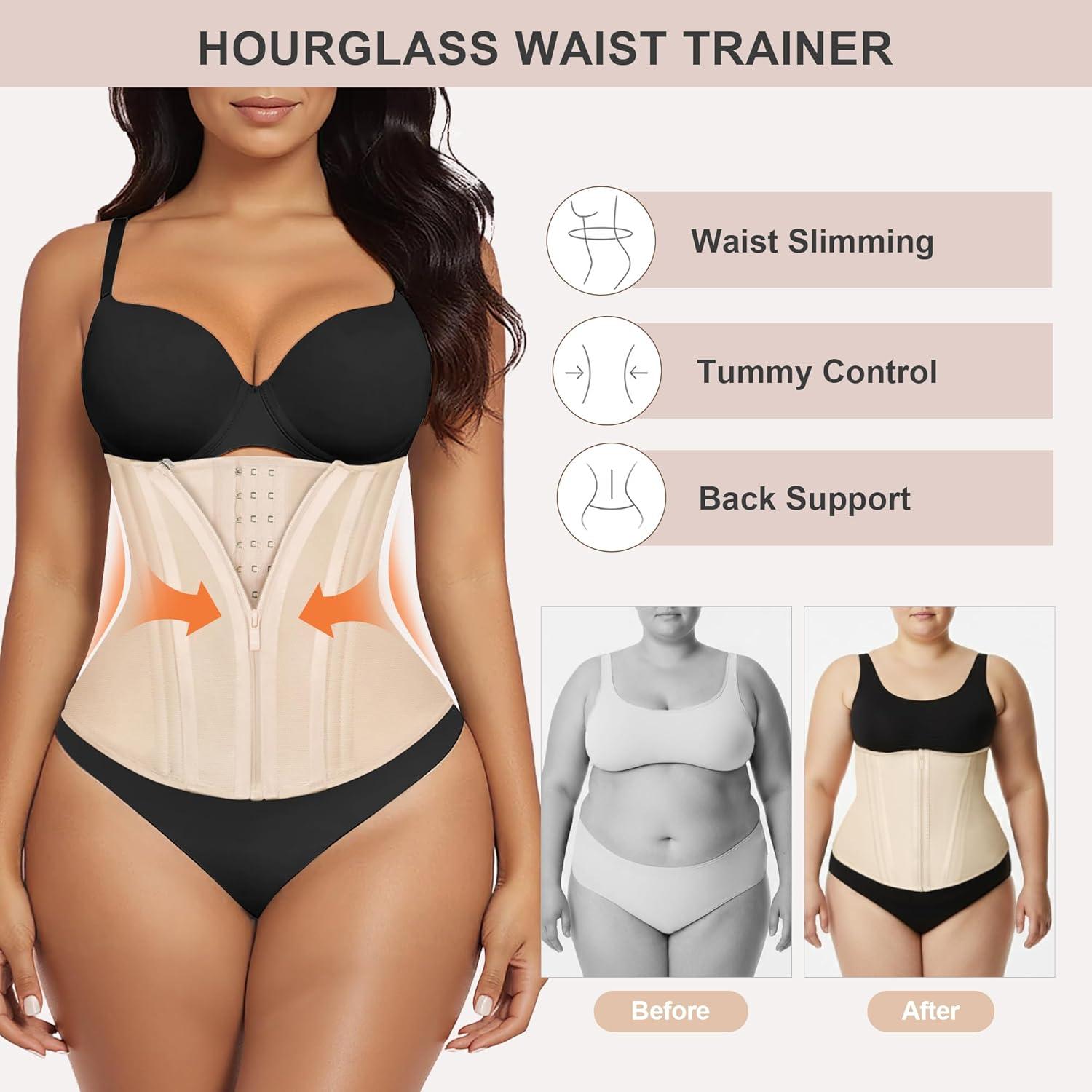 SHAPERX Waist Trainer for Women Corset Shapewear Tummy Control Sport Workout Waist Cincher Body Shaper Zipper and Hooks(Black)