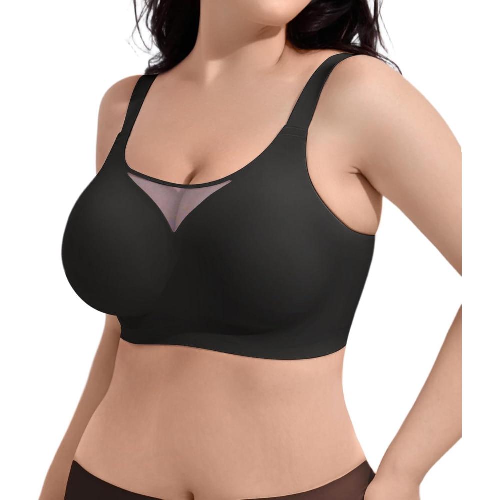 imageSHAPERX Wireless Bras for Women Seamless Push Up V Mesh Bralette No Underwire Full Coverage TShirt Bra with Removable Pads1black