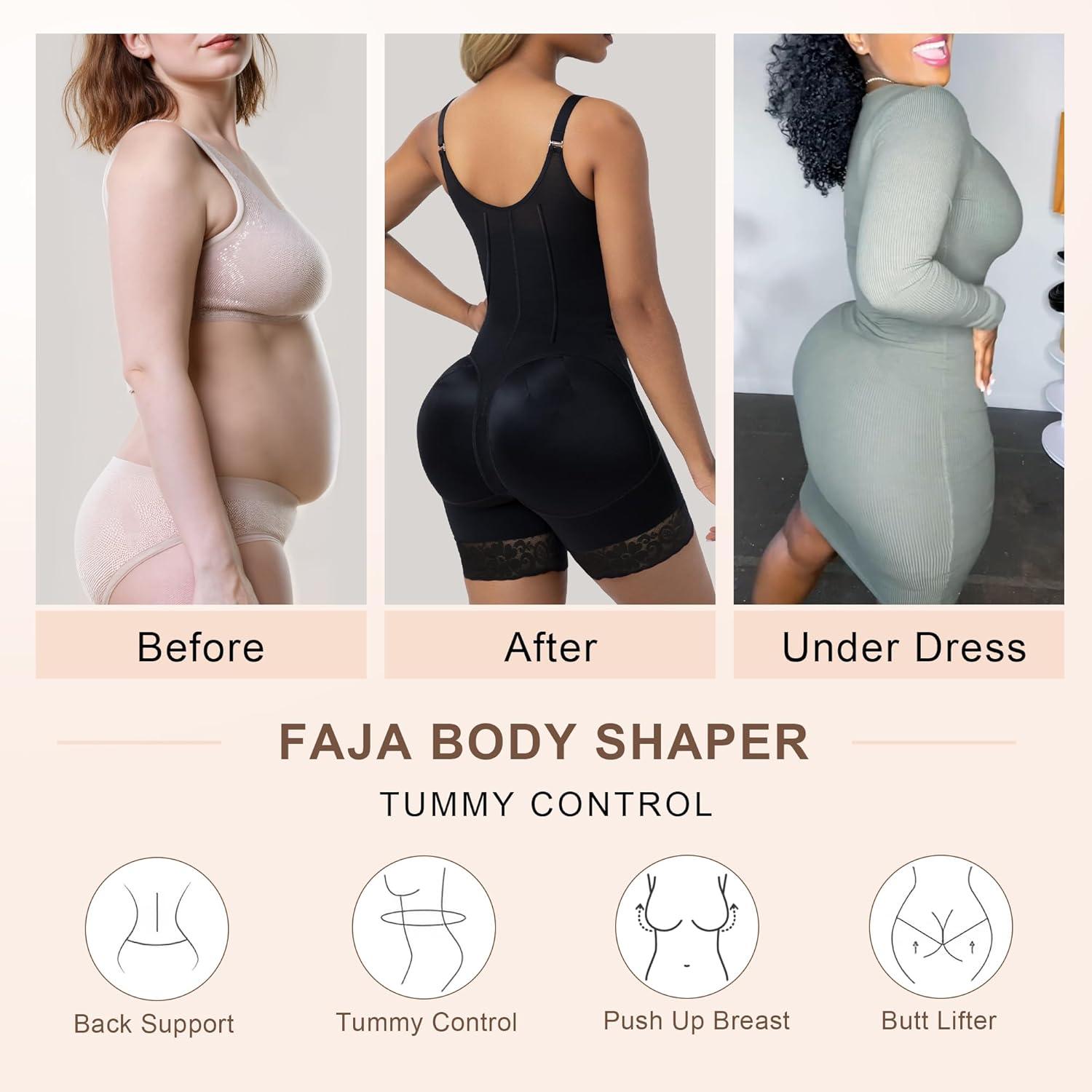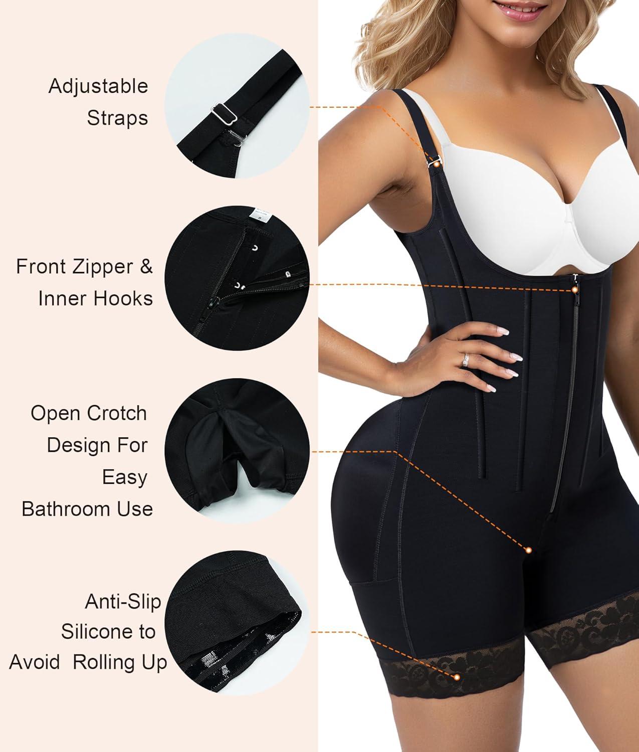 imageSHAPERX Womens Fajas Colombianas Tummy Control Shapewear Postpartum Butt Lifting Body Shaper with Boned SupportBlack Zipper