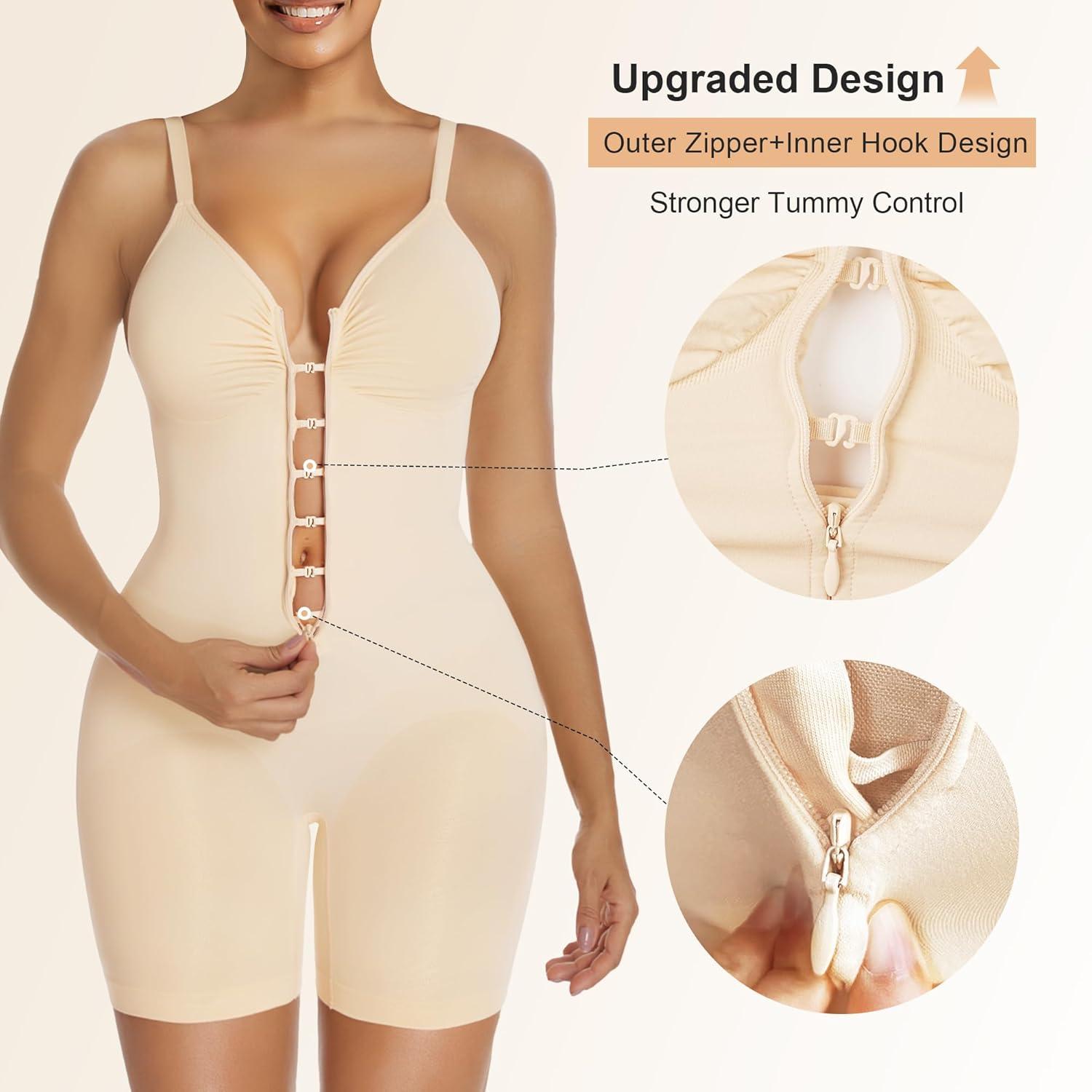 SHAPERX Women's Shapewear Bodysuit Tummy Control Seamless Zip-Up Sculpting Body Shaper Medium Compression(Beige Shorts)