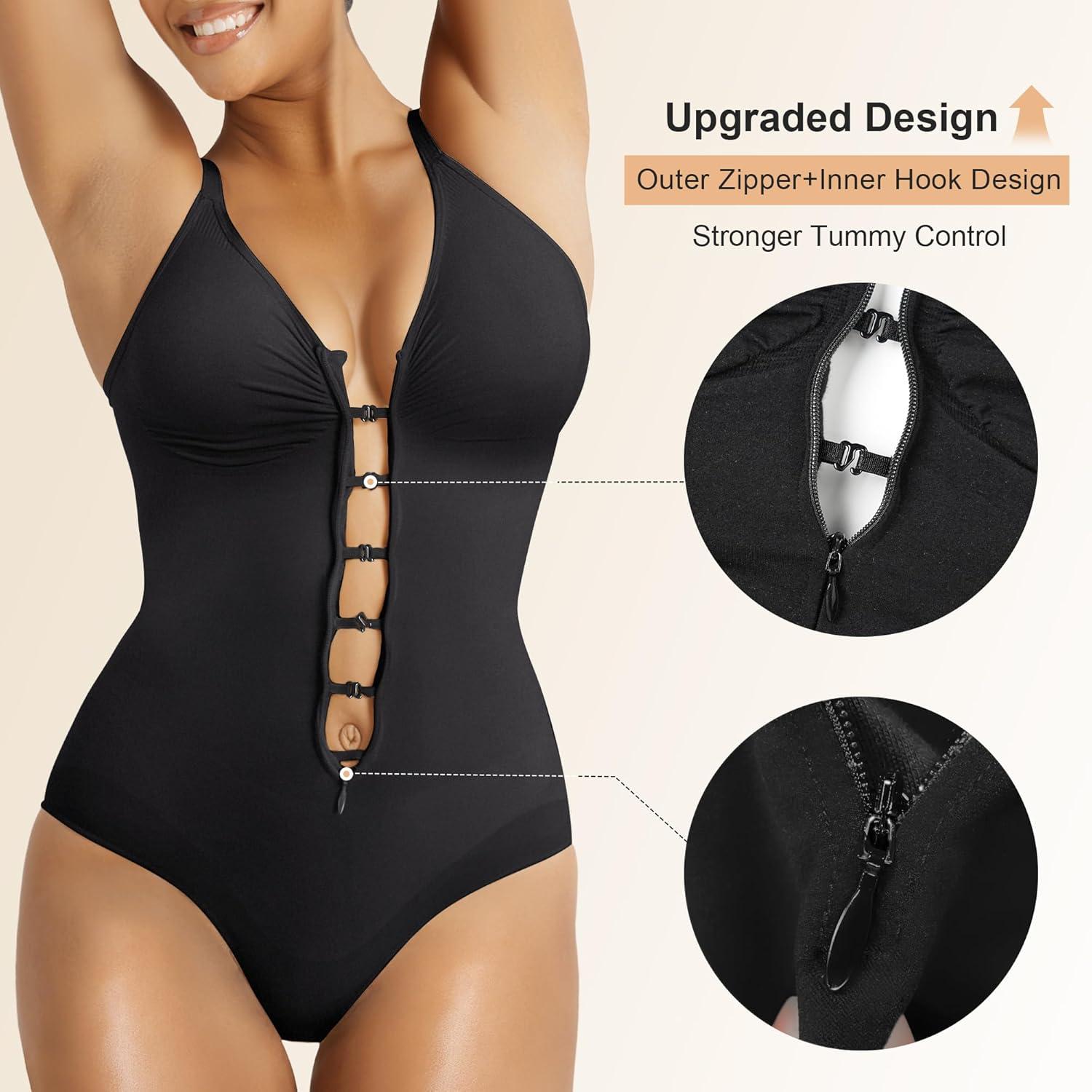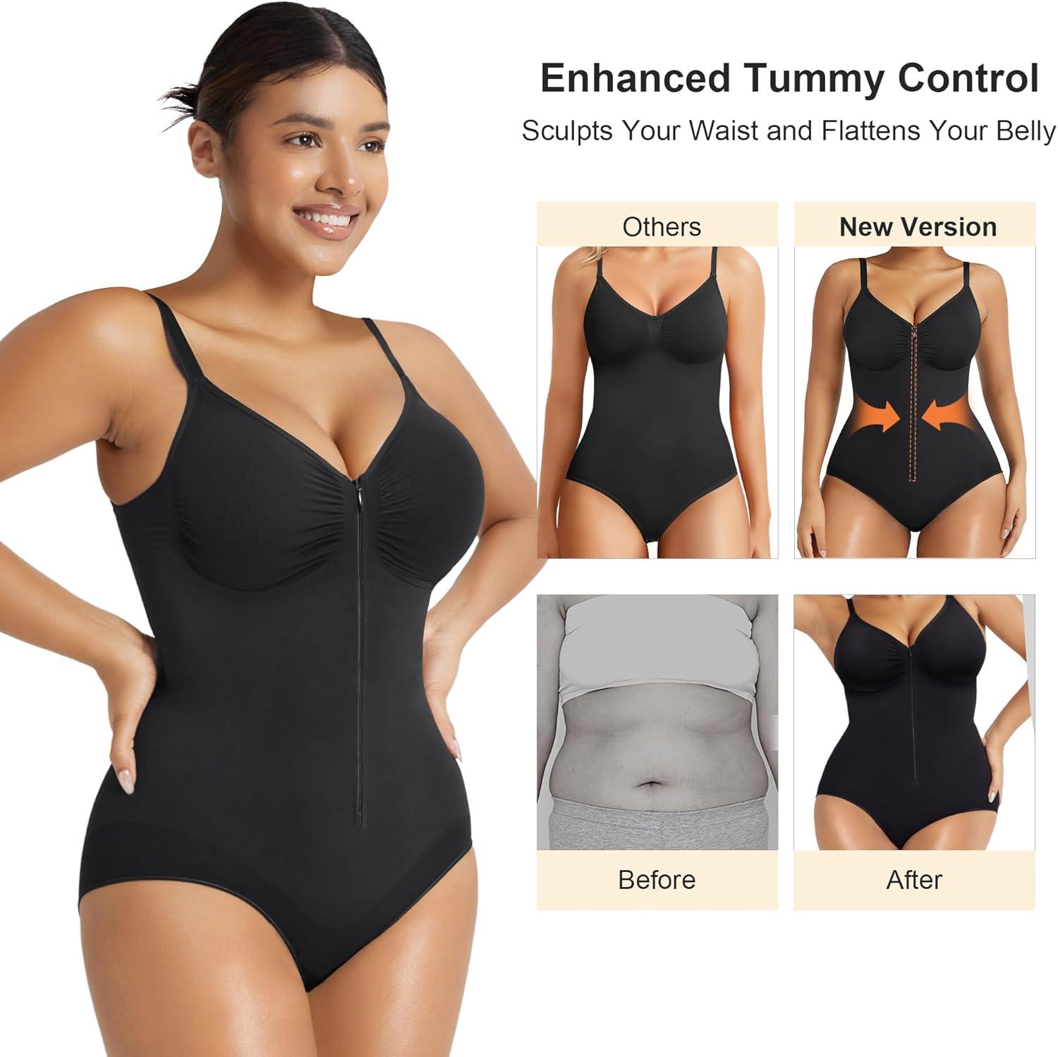 imageSHAPERX Womens Shapewear Bodysuit Tummy Control Seamless ZipUp Sculpting Body Shaper Medium CompressionBlack Brief