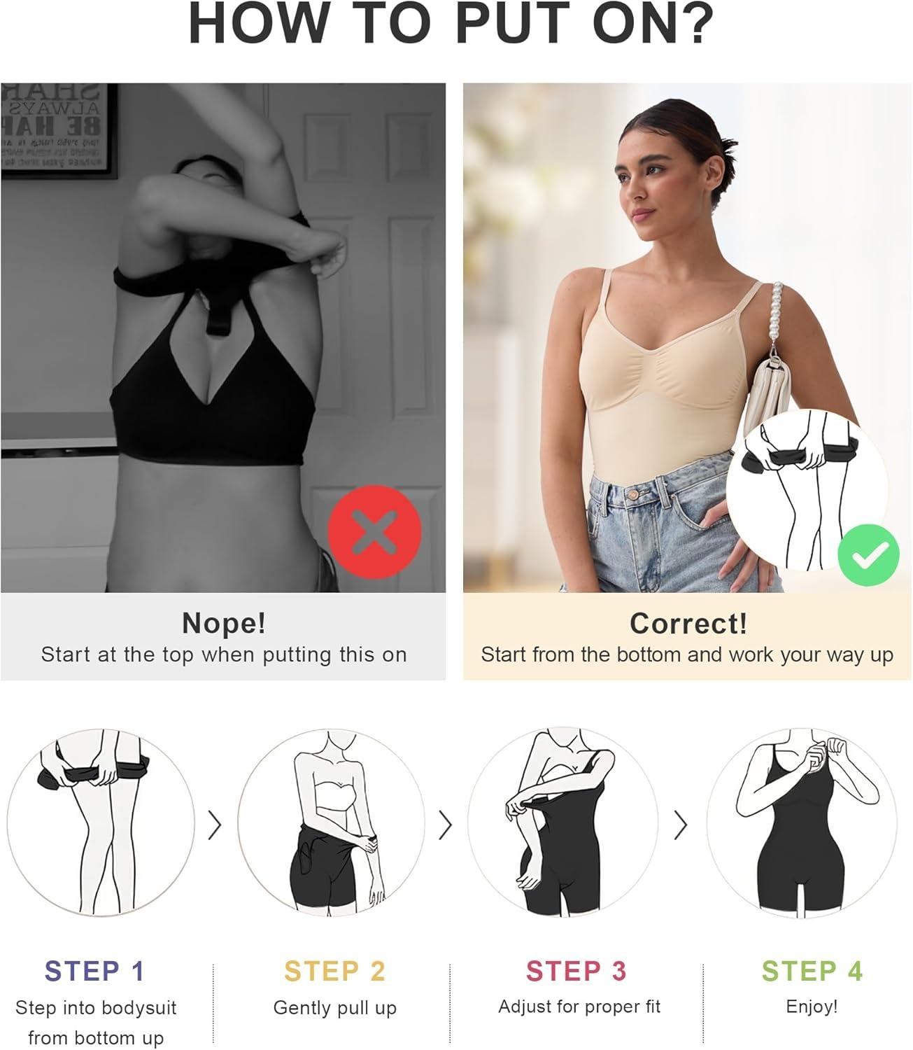 imageSHAPERX Womens Shapewear Tummy Control Bodysuit with Removable Pads Seamless Sculpting Mid Thigh Body ShaperBlack Mid Thigh