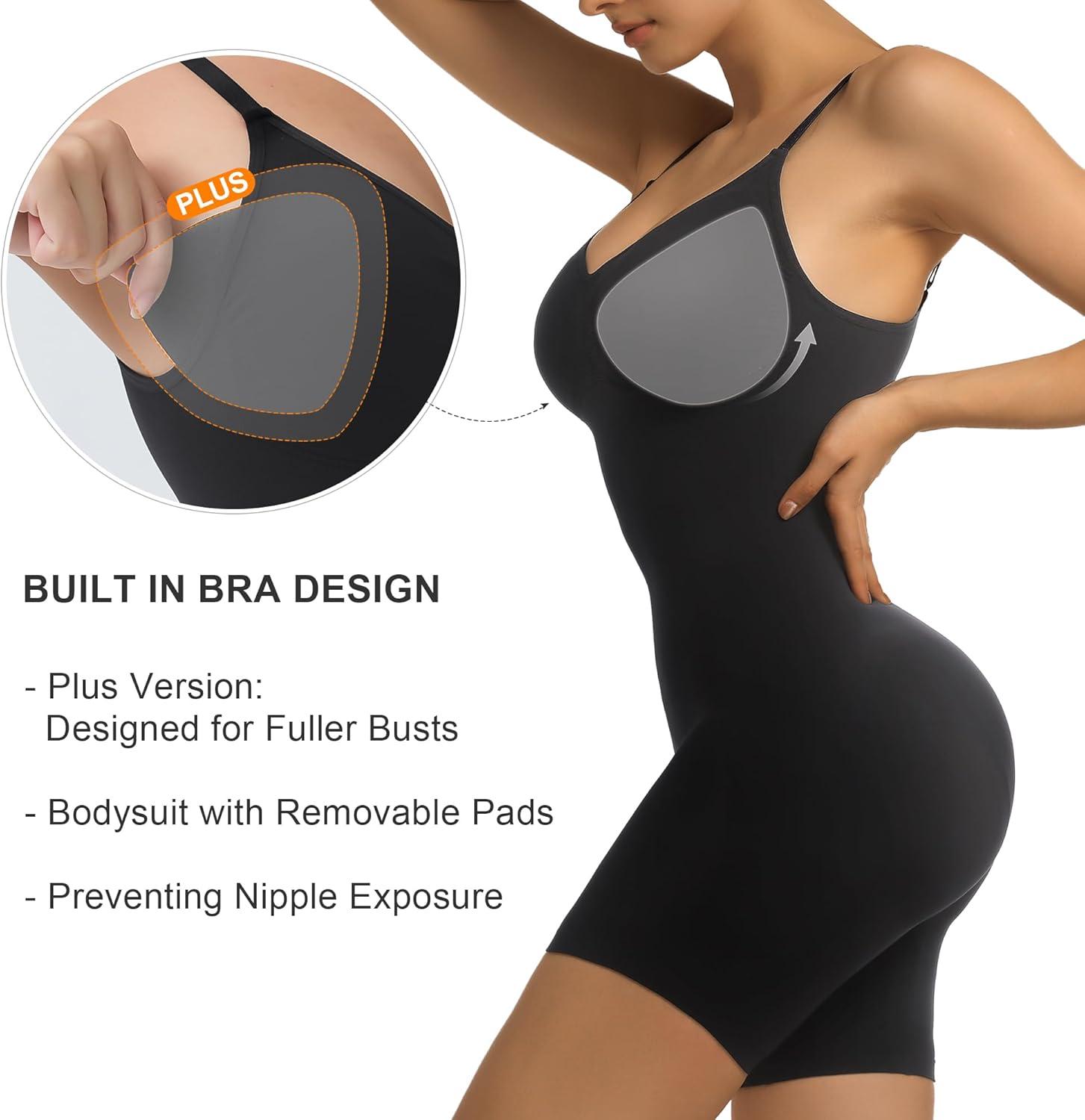 SHAPERX Women’s Shapewear Tummy Control Bodysuit with Removable Pads Seamless Sculpting Mid Thigh Body Shaper(Black (Mid Thigh))