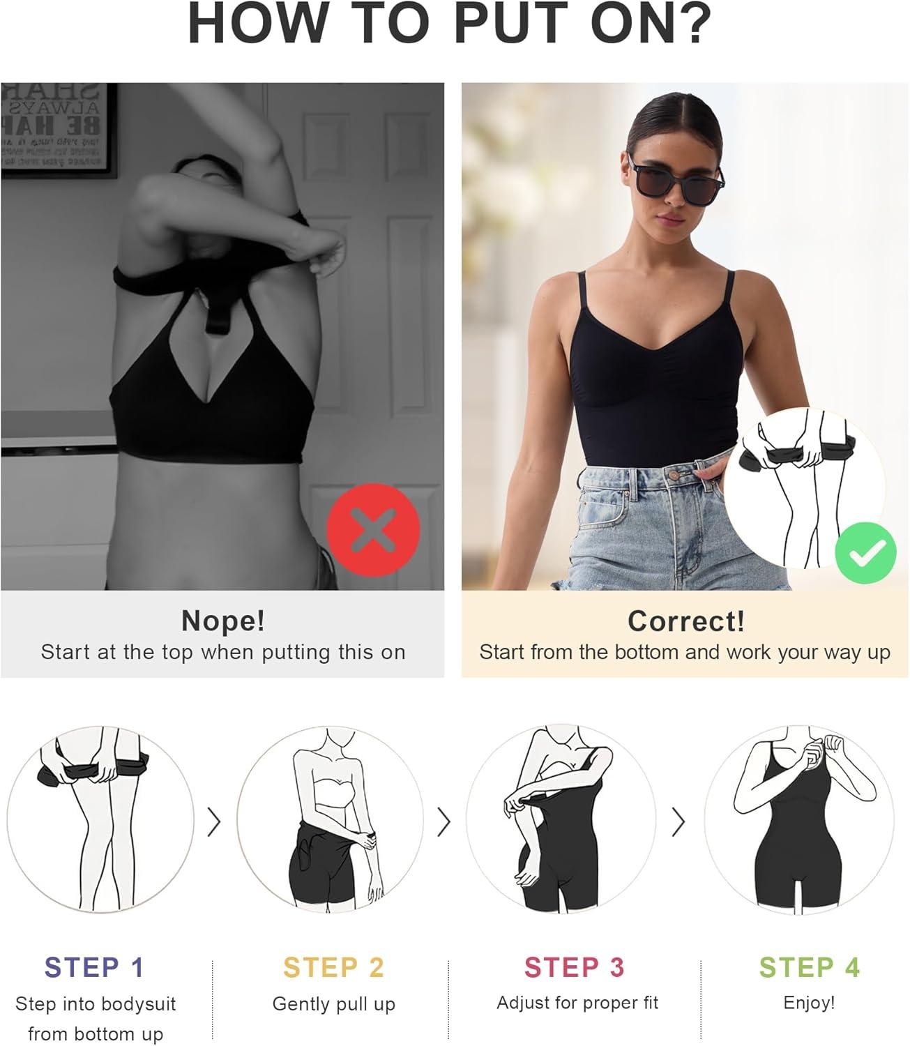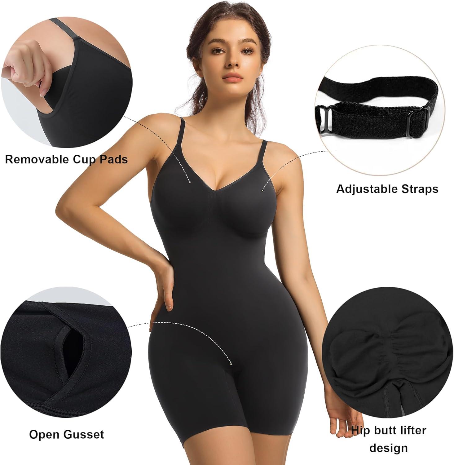 imageSHAPERX Womens Shapewear Tummy Control Bodysuit with Removable Pads Seamless Sculpting Mid Thigh Body ShaperBlack Mid Thigh