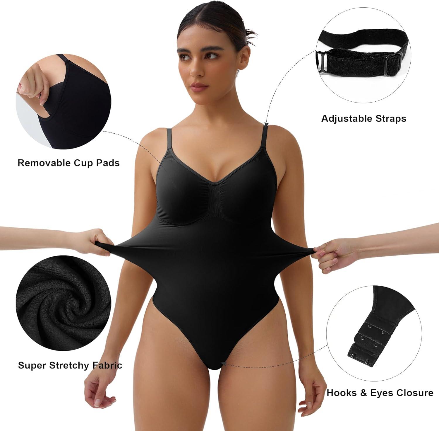 Don’t miss out on our limited-time offer: buy SHAPERX Women’s Shapewear Tummy Control Bodysuit with Removable Pads Seamless Sculpting Mid Thigh Body Shaper(Black (Thong)), get a free {accessory}!