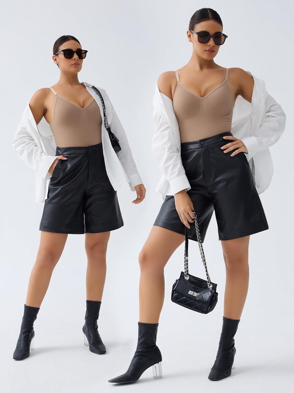 SHAPERX Strapless Shortie Bodysuit for Women Tummy Control Shapewear Seamless Sculpt Body Shaper with Removable Straps(Black Shorts)